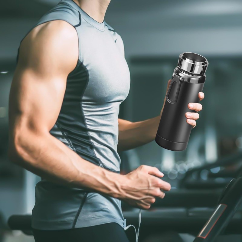 2. Intelligent temperature display: the thermos flask with LED temperature display shows precise indoor temperatures via LED touch display. This matte black 316 stainless steel activates the display by a simple touch and monitors the drinking temperature in real time.