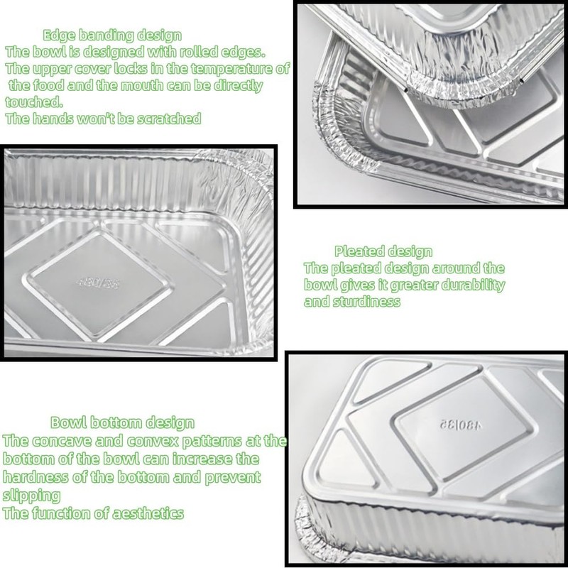 - 【Unique Design】:Each aluminum foil container has a suitable cardboard lid, with aluminum foil laminated on both sides, which is waterproof and oil-resistant. These food containers can also lock the food in the appropriate position, ensuring your food safety and better heat preservation. You can also write down the food descriptions, dates and dietary information for easy identification.