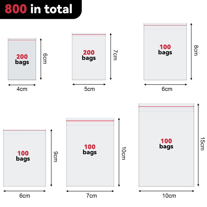 - Package information: you will receive 800 pieces of resealable plastic bags, amounts are sufficient to meet your daily usages, also sufficient for you to share them with your neighborhoods or many other people