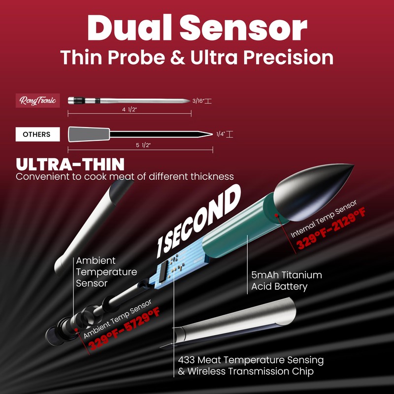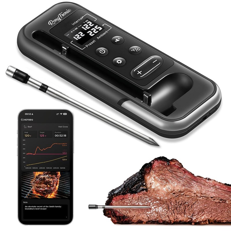 - Great Gifts for Men Women Cooking Enthusiasts: Rong Tronic's meat thermometer digital wireless arrives in gift-ready packaging, ensuring your Thanksgiving turkey and festive meals are cooked to perfection. The wireless design offers convenience and precision, making it a valuable addition to any kitchen. A perfect choice for home chefs and food lovers alike, it's a gift that will be cherished and used throughout the year