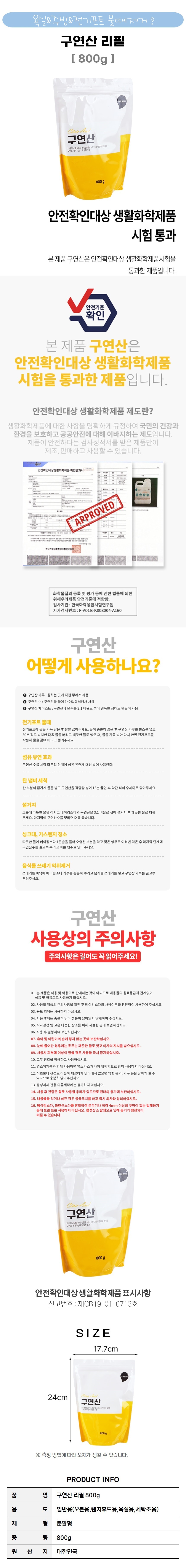 800g Citric Acid Refill for Bathroom & Kitchen Limescale Removal Cleaning 2ea
