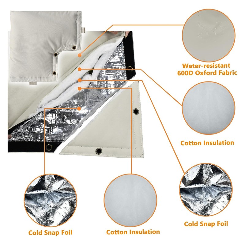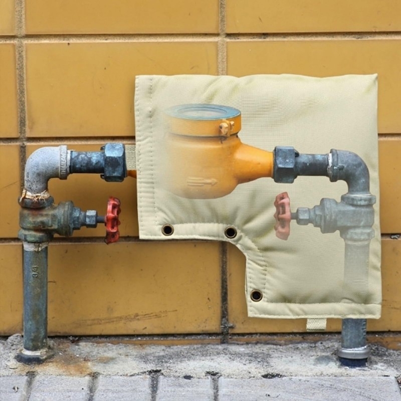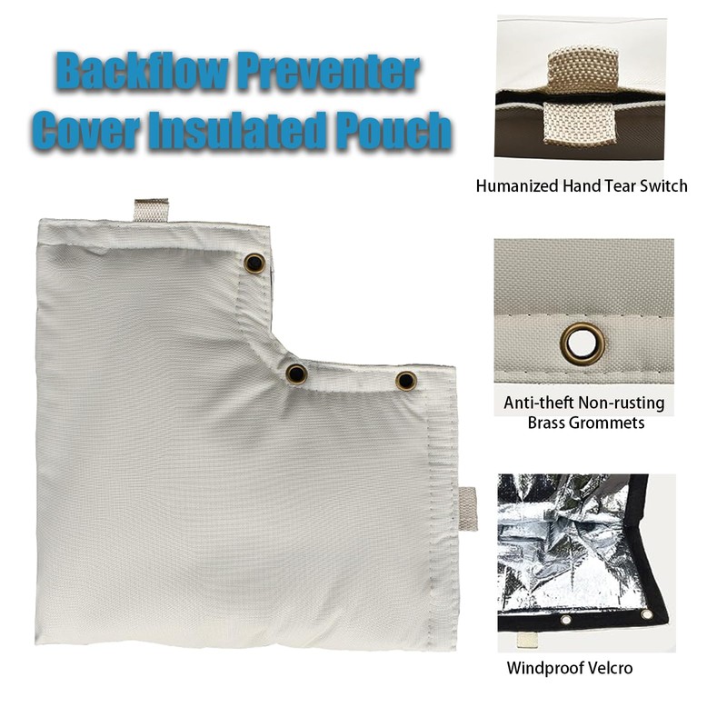 - The pipe insulated pouch is made of a 1-layer waterproof heavy-duty 600D Oxford fabric, 2 layers of cotton insulation, and 2 layers of PE striped coated cloth. It features double stitching and fasteners for maximum security and provides waterproofing and insulation effects. They help keep the pipes of backflow devices/irrigation systems/lawn sprinkler fire suppression systems warm, preventing them from bursting during freezing temperatures and protecting them from freezing or sun damage.