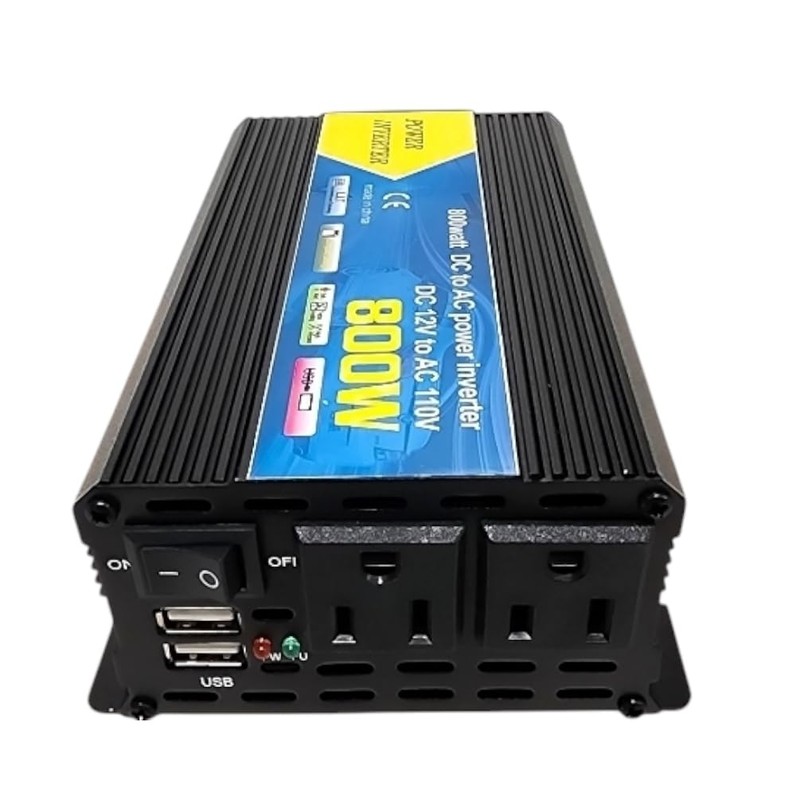 - POWER CAPACITY: 800W power inverter converts 12V DC to 110V AC with dual standard AC outlets for powering multiple devices simultaneously