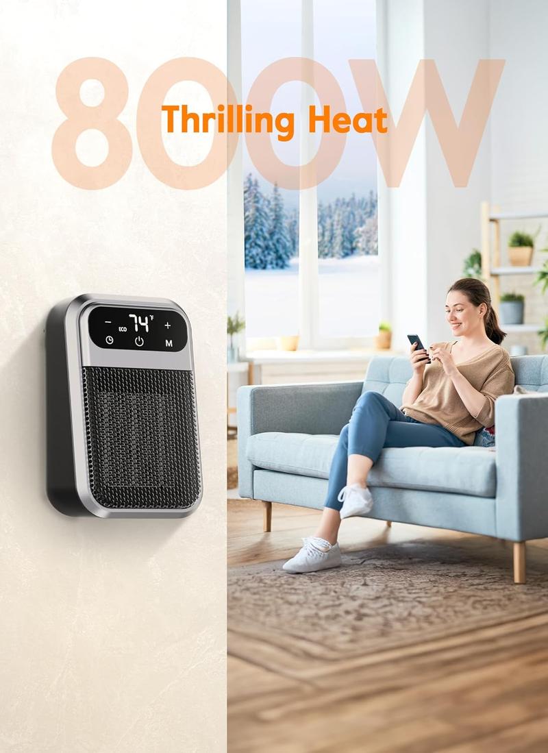 This 800W heater consumes less power, saving energy and cost compared to high-power models. It won't overload circuits, suitable for mild climates. Quietly heats a 100-square-foot room effectively.