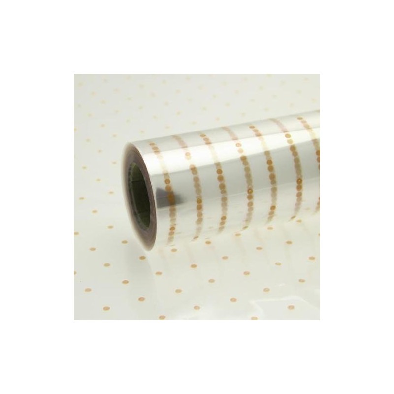 80cm Clear Coloured Polka Dot Dotted Florist Flower Cellophane Hamper Gift Wrap (2 Metre, Clear With Gold Dots)