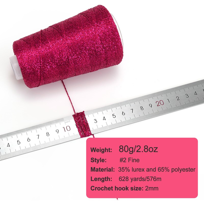 - Size:This yarn for crocheting is 2.8 oz/80g,628 yards/576m,#2 Fine Crochet Yarn.Crochet hook:2mm, stick needle:3mm.This yarn is suitable for mixing with a variety of yarns to give the knitted fabric an overall metallic luster.