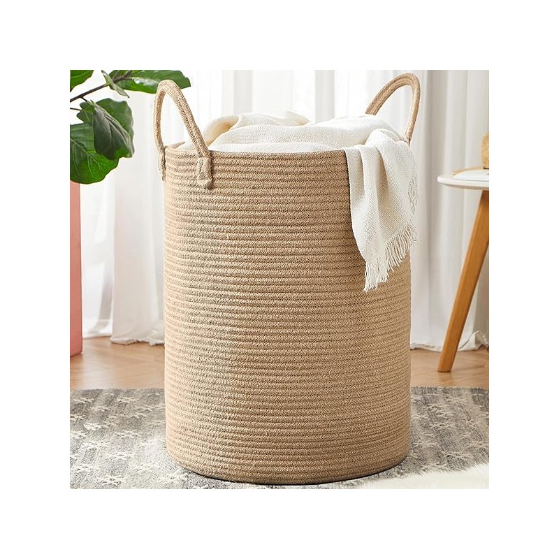80L Extra Large Jute Woven Rope Laundry Basket Tall Wicker Clothes Hamper for Baby Nursery Kids Blanket Basket in Living Room Bedroom
