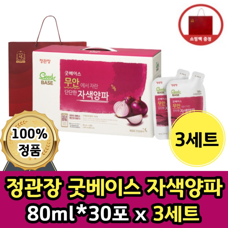 정관장 굿베이스 무안 에서자란 단단한 자색 양파 즙 80ml 30포 쇼핑백포함 적색 무첨가 자주색 붉은색 양파 국산