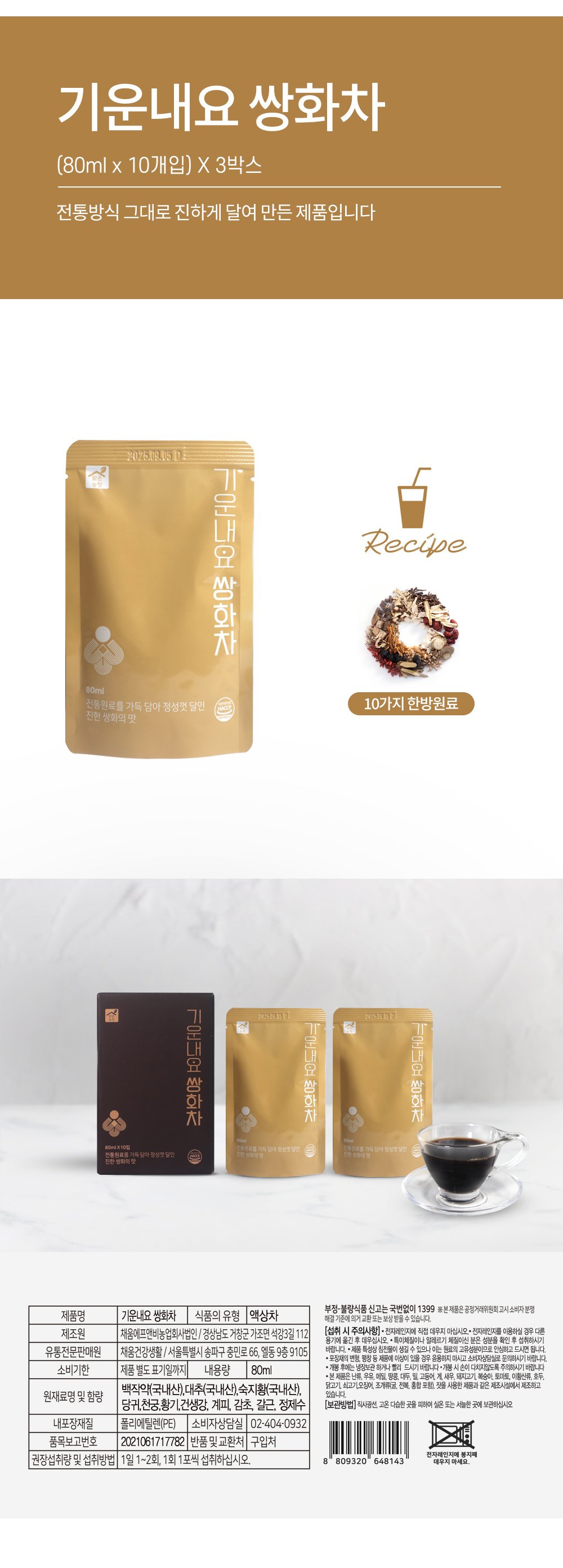 기운내요 쌍화차 (80mlx10개입) Cheer Up Ssanghwa Tea (80ml x 10 packs)