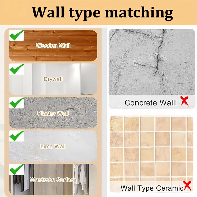 - 【Wide Applications】The loadbearing picture hangers hooks are perfect for home decorations like hanging framed pictures, mirrors, canvas artwork, clothes, keys, bags, family photos, crosses, clocks, calendars, posters, and others. It is not applicable for use in concrete wall or ceramic wall.