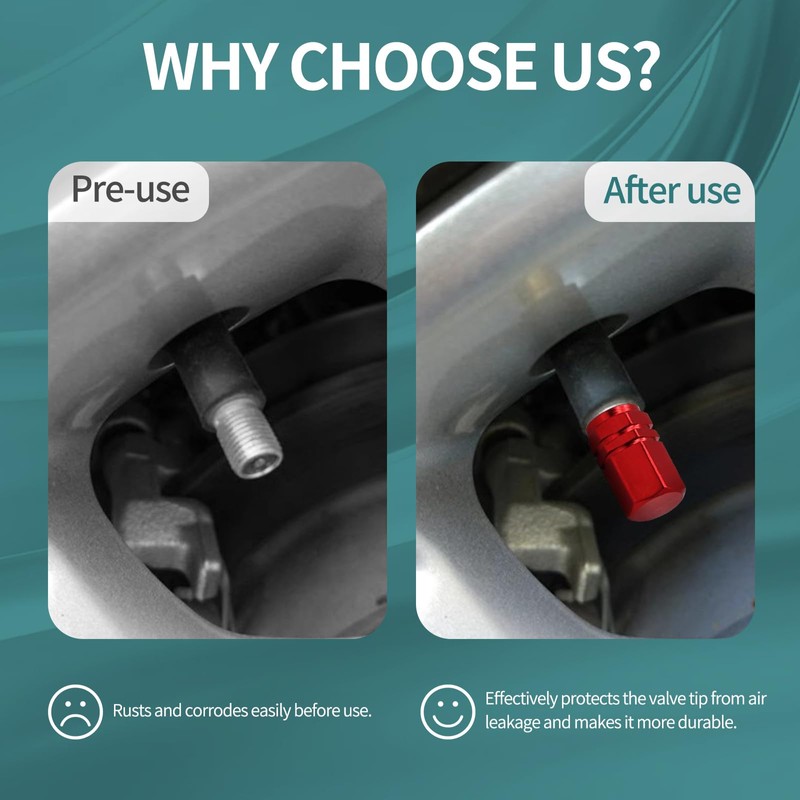 - Long-Term Use: These aluminum alloy tire valve stem caps are strong and durable, not easy to break and deform, even in poor road and weather conditions can maintain its stability, thus extending a service life of these tools.