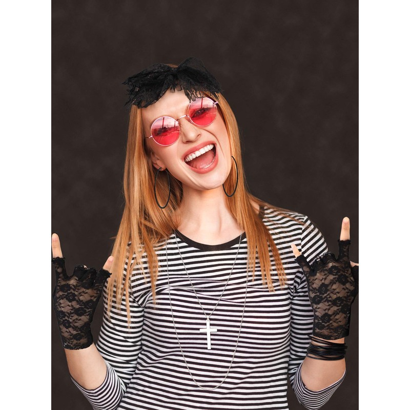 80s Lace headband earrings fishnet gloves necklace bracelet for 80s party