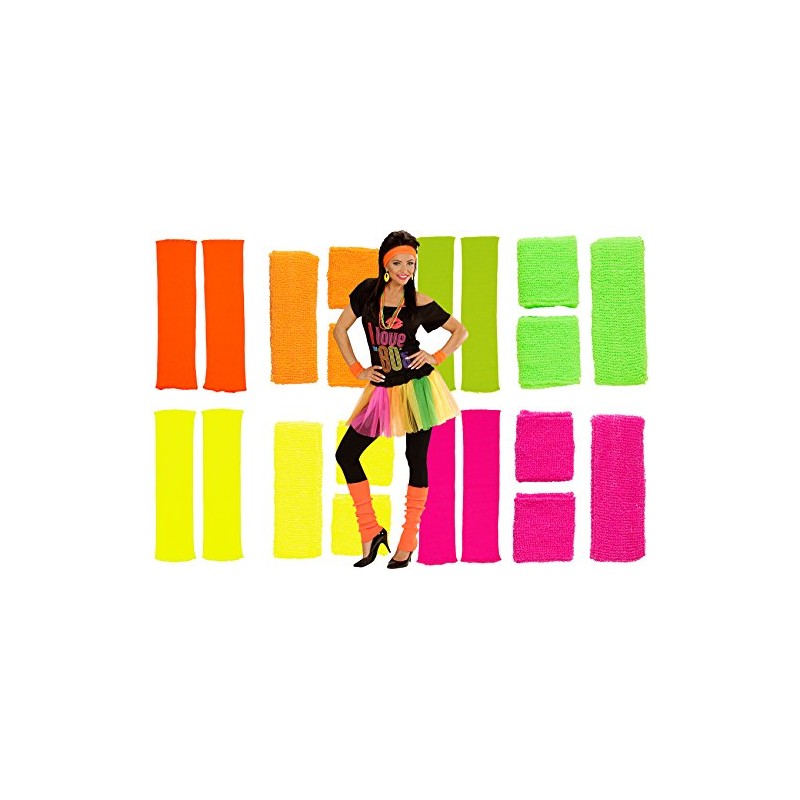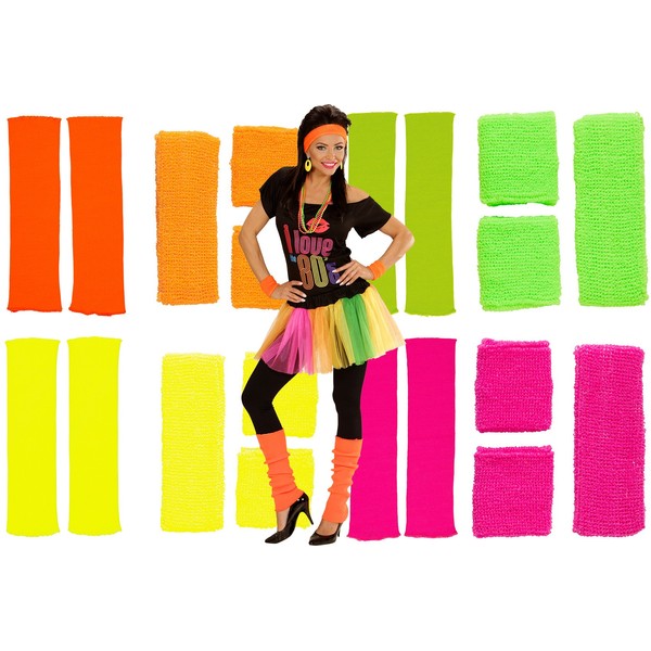 80s Neon Sweatband Headband Gloves Set 4 colours, Pink