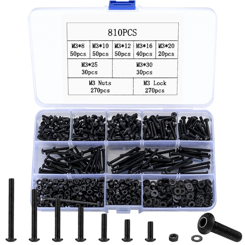 • Package includes: a total of 810 pieces M3 screw set, size and quantity includes: 50 pieces M3 x 8 mm, 50 pieces M3 x 10 mm, 50 pieces M3 x 12 mm, 40 pieces M3 x 16 mm, 20 pieces M3 x 20 mm, 30 pieces M3 x 25 mm, 30 pieces M3 x 25 mm. 3 x 30mm, 270 pieces M3 nuts, 270 pieces M3 washers, available in sufficient quantities and sizes to meet the requirements of different scenarios and areas.