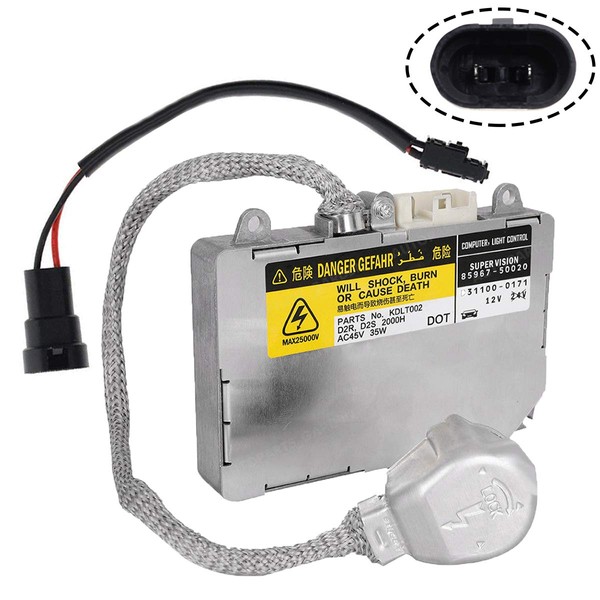 - Package includes: 1pc Xenon Headlight Ballast with Ignitor as pictured (Light Source: D2R D2S; Input Voltage: DC 12V; Output Voltage: AC 85V; Output Power: 35W; Max Voltage at startup: 25000V; Lifetime expectancy: 2000H; Fits left or right headlight; Size: 125mm (L) x 80mm (W); Thickness: 20mm; Bulb Cord Length: 280mm; Bulb Socket Depth: 27mm)