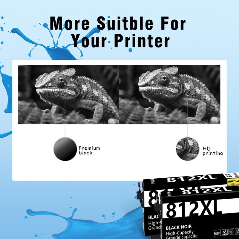 - --For 812xl black --812XL Ink Cartridges / for 812 undergoes a strict experiment to ensure crisp sharp black text and vibrant color day to day printing.If you have any questions, please feel free to contact us, our professional after-sales team will serve you