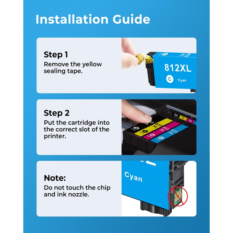 - These 812XL T812 ink cartridges compatible for Epson 812 provide clear and vibrant printing effect, which gives you a good visual feast