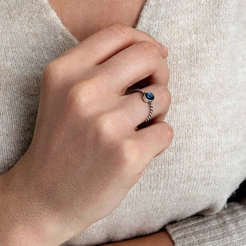 - MADE WITH LOVE - 925 sterling silver stackable ring with abalone. Adornment width 7.2 mm. Band width 1.8 mm. Solid 925 silver rings are great for long-term wear as with the right care, they will retain their shine.
