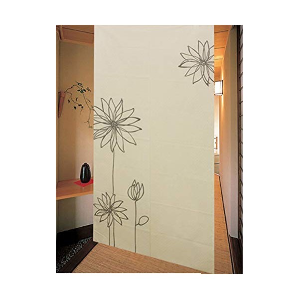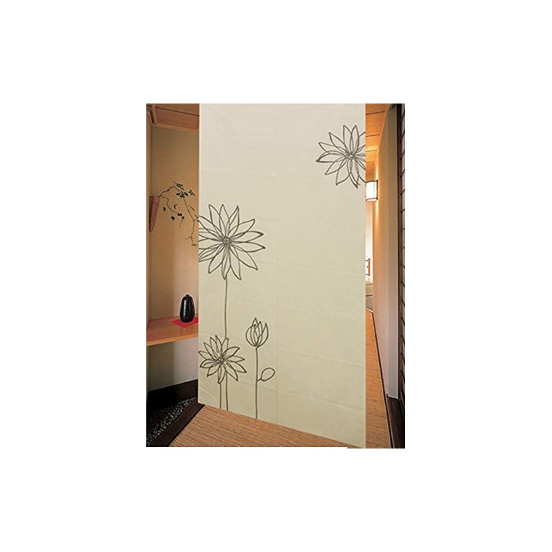 ロングのれん ラインフラワー 幅85cm×丈170cm BE