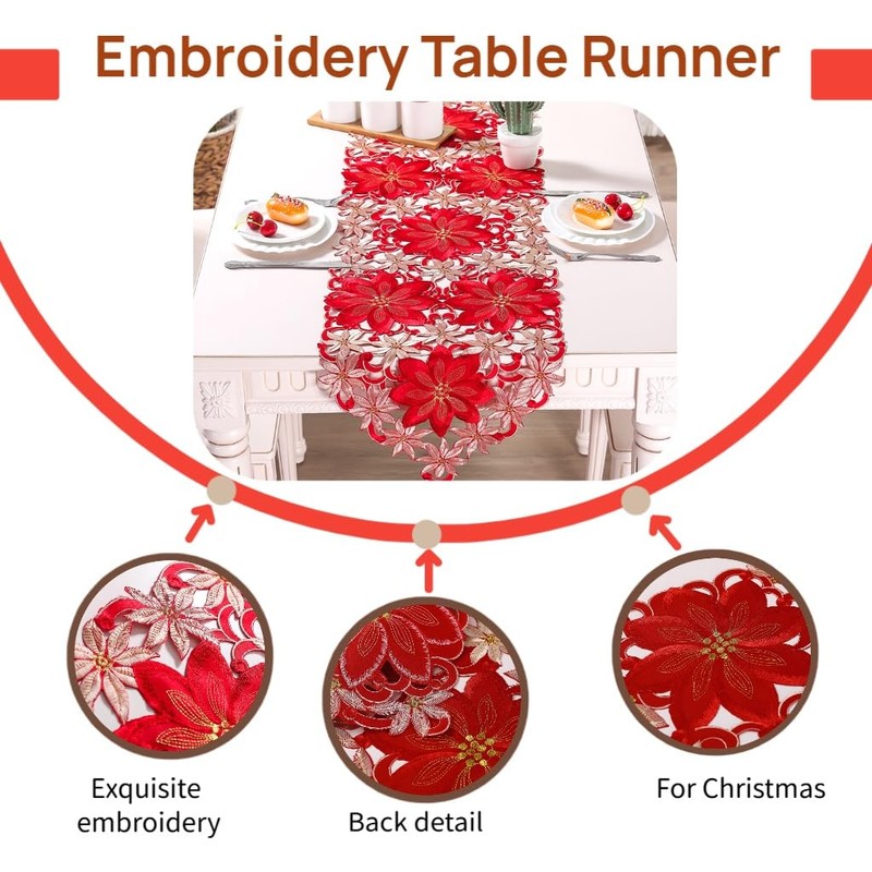 - 🛋️ Soft & Durable Polyester: Exquisite Embroidered Crafted from Durable Polyester fabric for a comfortable, inviting feel under your holiday table settings.