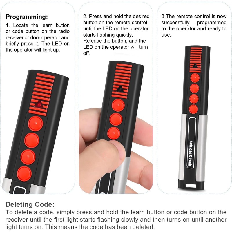 - Disclaimer: Before purchasing, please make sure your remote control is 868MHz frequency and the LED light is red.