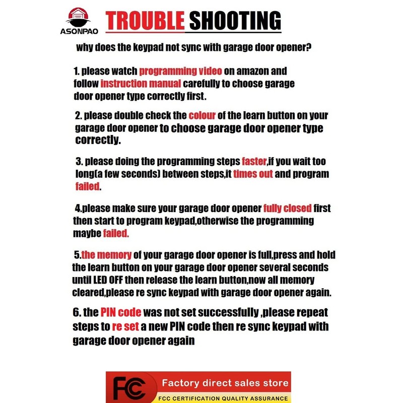 - Attention: please make sure your garage door opener fully closed first then start to program keypad,otherwsie programming maybe failed.