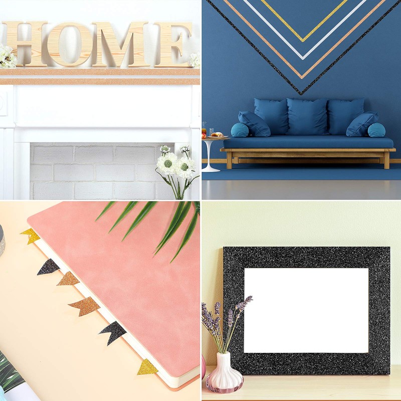 - Product details: you will get 8 rolls glitter washi tapes (2 black tapes, 2 silver tapes, 2 gold tapes and 2 rose gold tapes) and 4 pieces tape sample boards, each roll of masking tape measures about 15 mm/ 0.6 inch in width and 11 yards in length