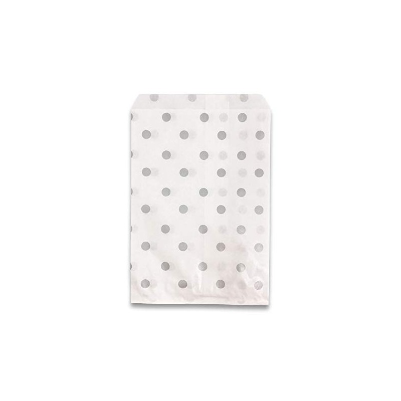 - Color: These bags have a fun Silver Polka Dot on White design, perfect for all occasions including birthday party favors, store fronts, bakeries, or any event or party.