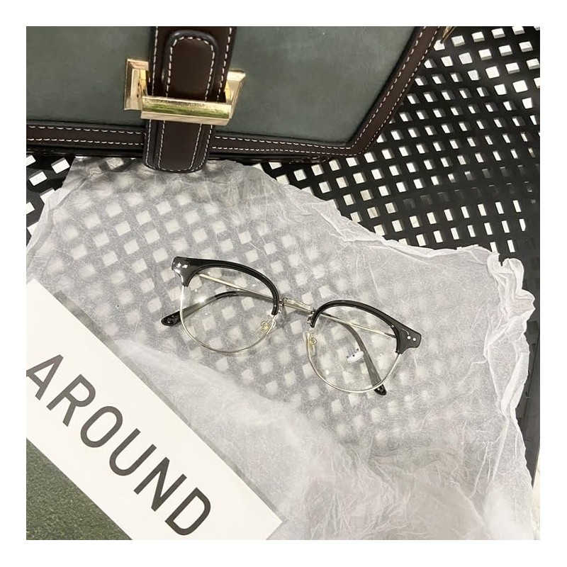 88flix Unisex Blow Sunglasses, Square, Big Frame, Blue Light, For PC Smartphones, Date Glasses, Metal Frame, Small Face, Silver