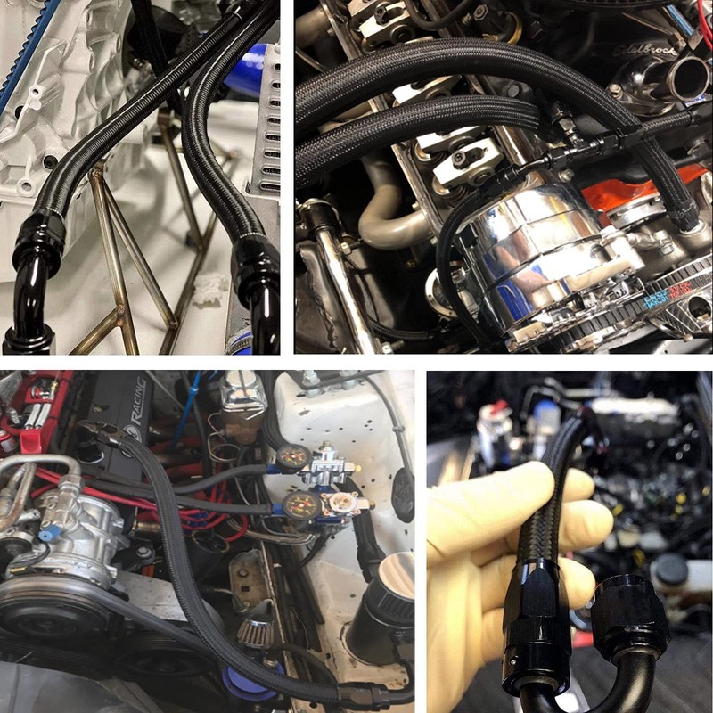 - Package Includes:1x 20ft AN-8 Black Nylon PTFE Fuel Hose,4x AN-8 Straight PTFE Fitting,2x AN-8 45 degree PTFE Fitting,2x AN-8 90 degree PTFE Fitting,2x AN-8 180 degree PTFE Fitting. Professional Installer is Highly Recommended.