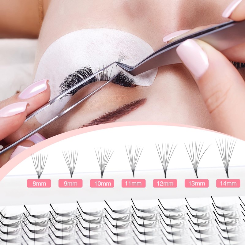 8D Volume Eyelash Extensions M Curl 0.07 mm Mixed 8-14 mm Eyeliner Effects Lash Extensions Cat Eye Fox Eyelash Styling 8D M L+ Curl Russian Cluster Eyelash Extensions (8D 0.07-M Curl-Mix)