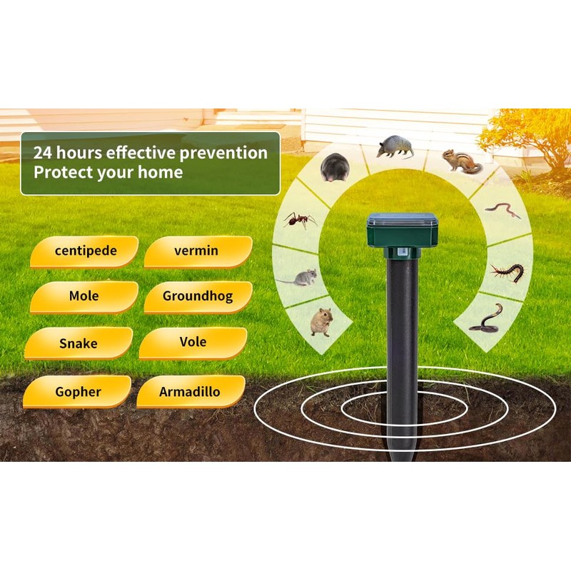• EXCELLENT QUALITY -Safe and Economic Mole stake is operated by a solar battery. Insert the groundhog repellent stake in your garden. Protect your garden from moles hills. Mole deterrent devices solar renewable power that actually chase the pest away.