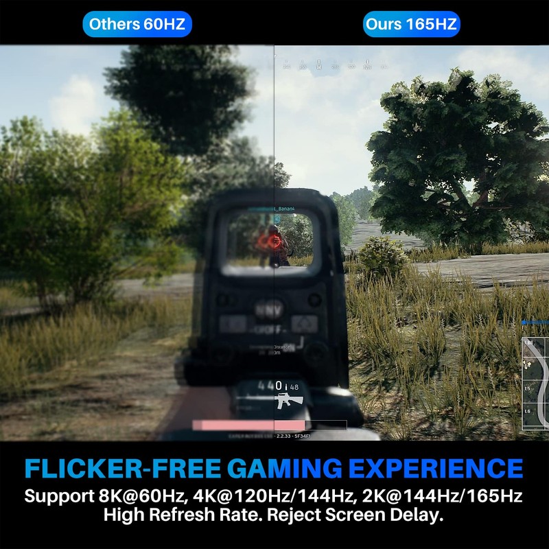 Adoreen DisplayPort 1.4 Cable supports the resolution up to 8K 7680x4320@60Hz, 4K 3840x2160@144Hz and 2K@240Hz, ideal for doing high performance gaming or watching a HD movie on your television.
