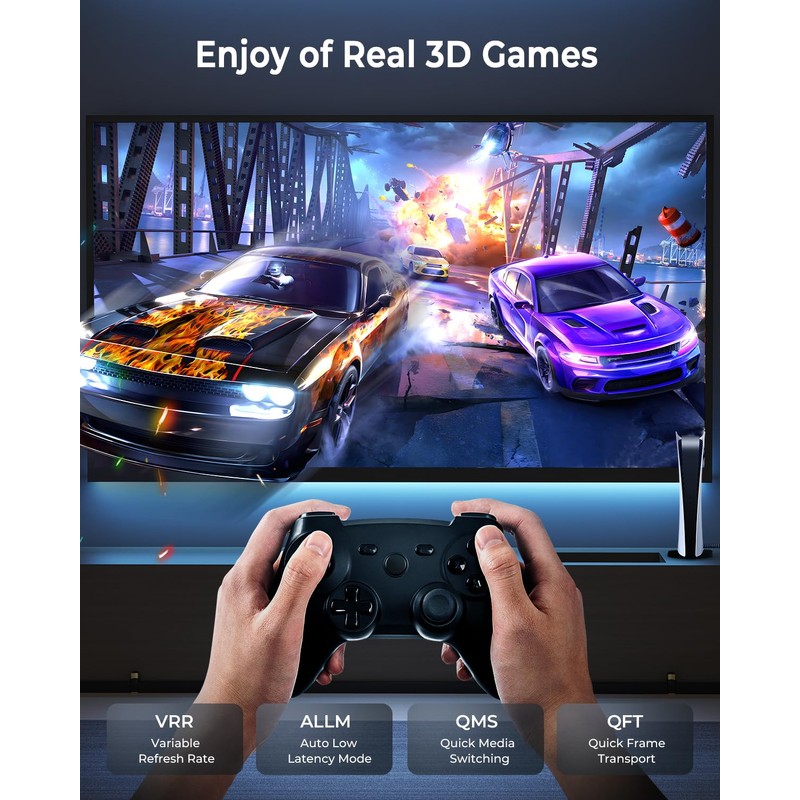 • Upgraded 8K Hdmi Cable: 8K HDMI high-speed transmission bandwidth is up to 48Gbps, which is 2.67 times higher than HDMI 2.0 cables(18Gbps). HDMI 2.1 cable supports 8K 60Hz, 4K 120Hz, high refresh rate and resolution 7680 x 4320, which not only supports for Dynamic HDR and 12-bit color processing technology to restore the most realistic and vivid images. It also supports for eARC, VRR, QFT, ALLM, QMS, DTS:X, 3D video Display and more