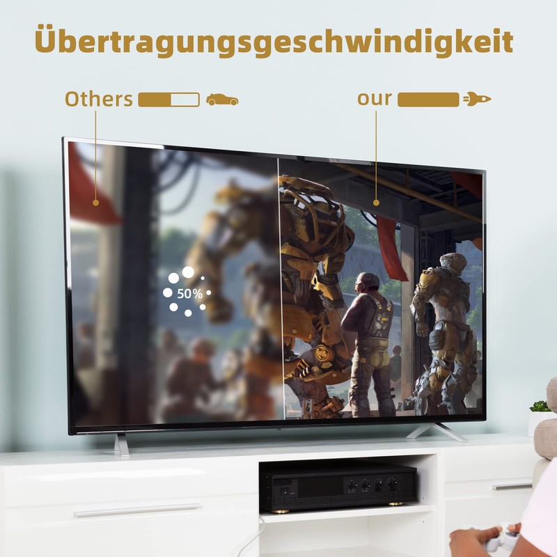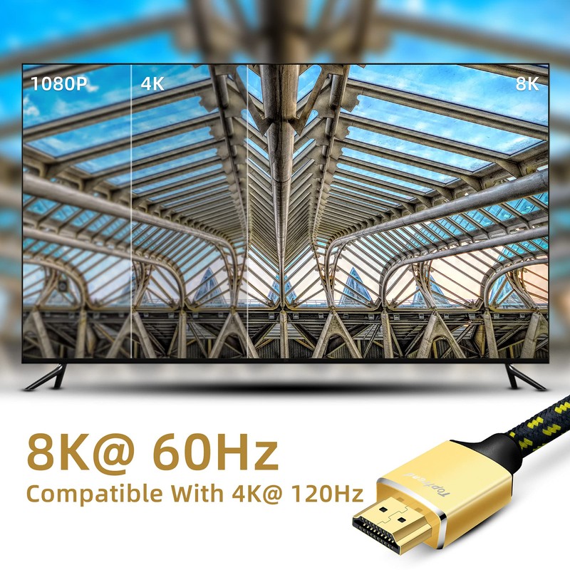 - Excellent Material - Toptrend Cable to HDMI2.1 are produced by gold plated Copper alloy connectors, Polished anodized Aluminium alloy housing and 30AWG Thick copper wire, triple shielding layer shielded to avoid any EMI/RFI, ensure HDMI cable can high-speed and stable signal transmission and minimize signal loss.