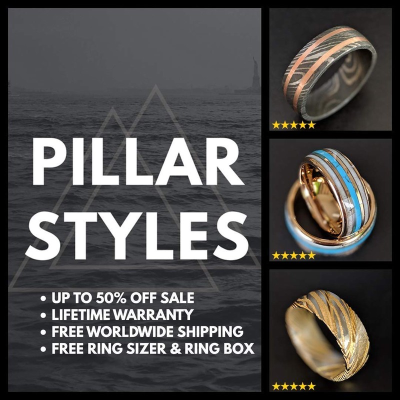 The inlays evoke a powerful, unique wedding band that really gives you the "WOW" factor when being worn. Other Pillar Styles customers have noted how shimmering and eye catching it is - especially in the sunshine! The photos don't do this ring justice - it looks even better in person. If you're going to wear a ring daily, why not choose one that stands out as powerful and exclusive to you?
