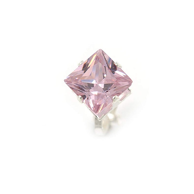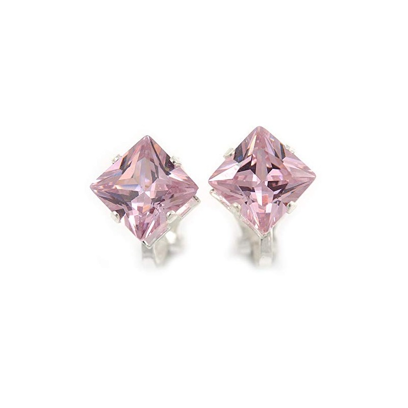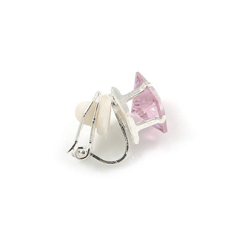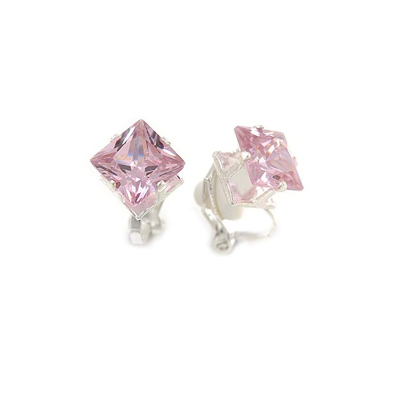 8mm Light Pink Cz Square Clip On Earrings In Rhodium Plating