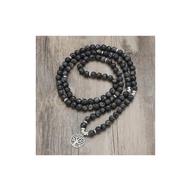 8mm Mala Beads 108 Meditation Bracelet Necklace with Tree of Life Charm (Labradorite)