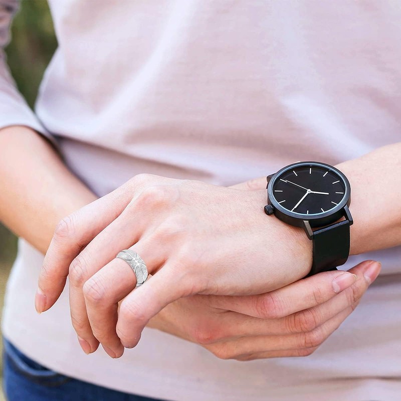 - ♥ 8mm Stainless Steel Band Rings Hammered with Basketball Pattern Domed Style.