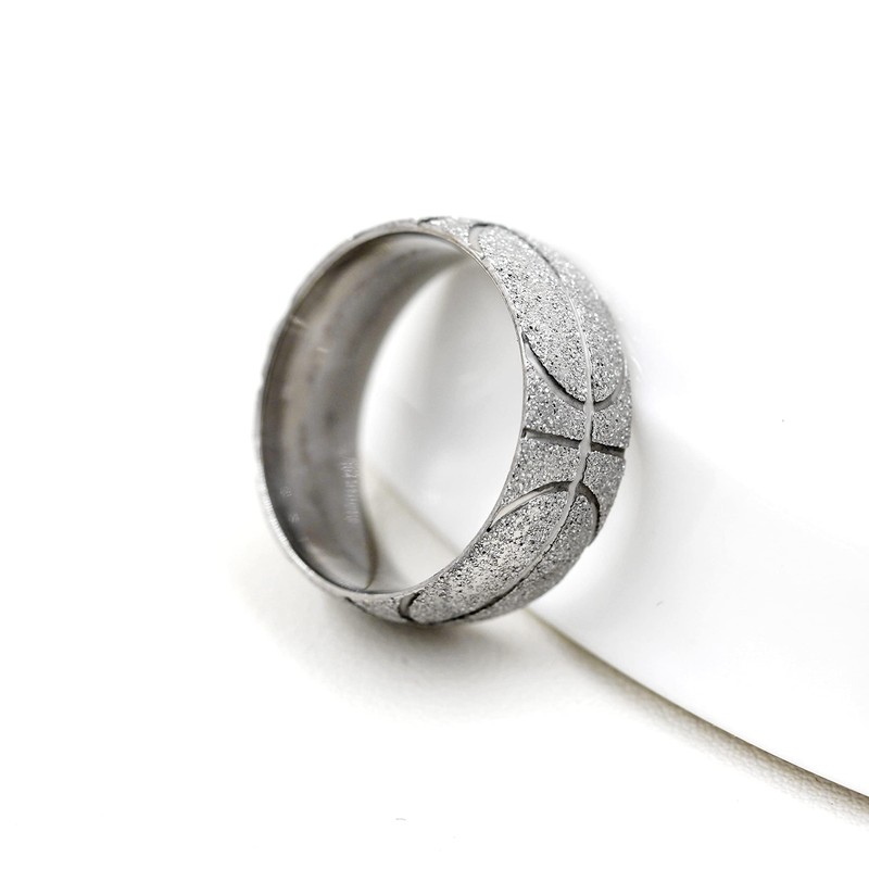 Product feature: 1.Style: 8mm stainless steel band Rings hammered with basketball pattern.