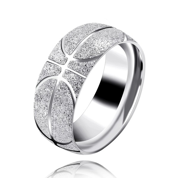 8mm Stainless Steel Sports Ring Basketball Player Jewelry Gifts Domed Style Ring for Men Boys (white Size 12)
