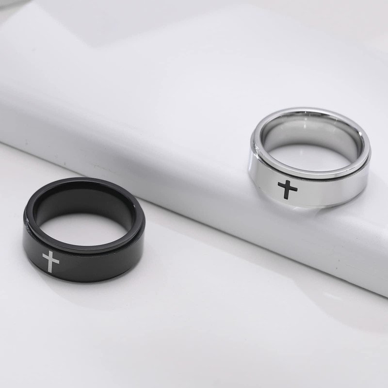 - ❤【Unique Design】Our spinner rings for anxiety are full of personality and cool. The high polished cross spinner ring creates a timeless modern look that can be used as a symbol of your faith or as a cool fashion statement. Flexible rotation of worry ring can help you relieve anxiety.