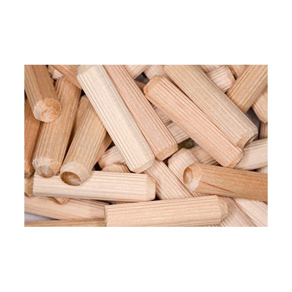 8mm x 40mm Wooden Dowel Pins Grooved Dowels Plugs Chamfered Fluted Pin Wood for Furniture Woodwork Joinery - Pack of 20 (Beechwood)