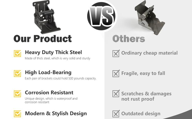 - Self Lock: When folding the leg, the bracket will be locked automatically, each bracket comes with 11 screws.
