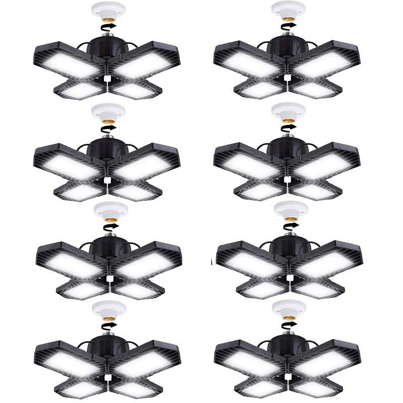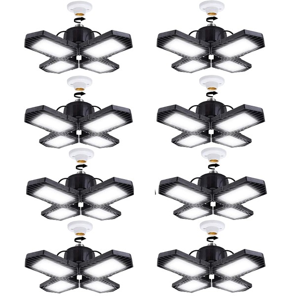 8Pack LED Garage Lights, 100W Deformable LED Lighting 10000LM E26 Daylight 6000K Super Bright Adjustable Lights for Warehouse