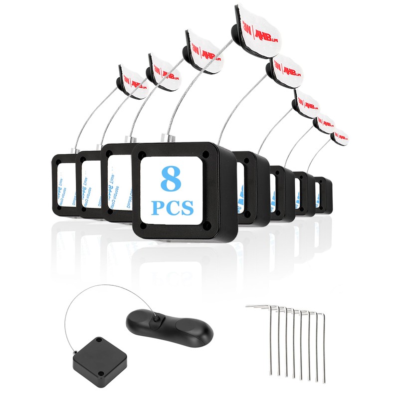 8Pack Remote Control Tether, 6.5 Ft Remote Control Leash, Retractable Safety Lock with Adjustable Lock Strap for TV Remotes, Game Controllers, and Tablets - Perfect for Showrooms