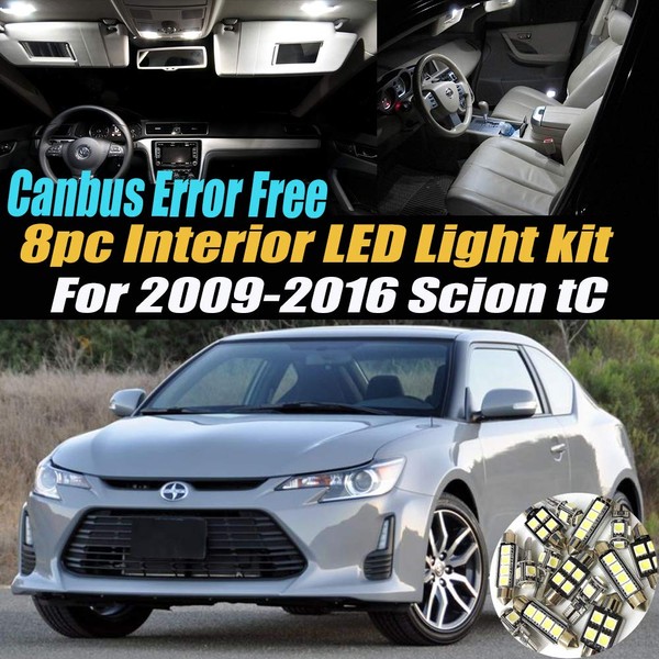 Name: 8Pc Canbus Error Free Super White 6000K Car Interior LED Light Kit Compatible for 2009-2016 Scion tC Equipped w/Advanced Computer system