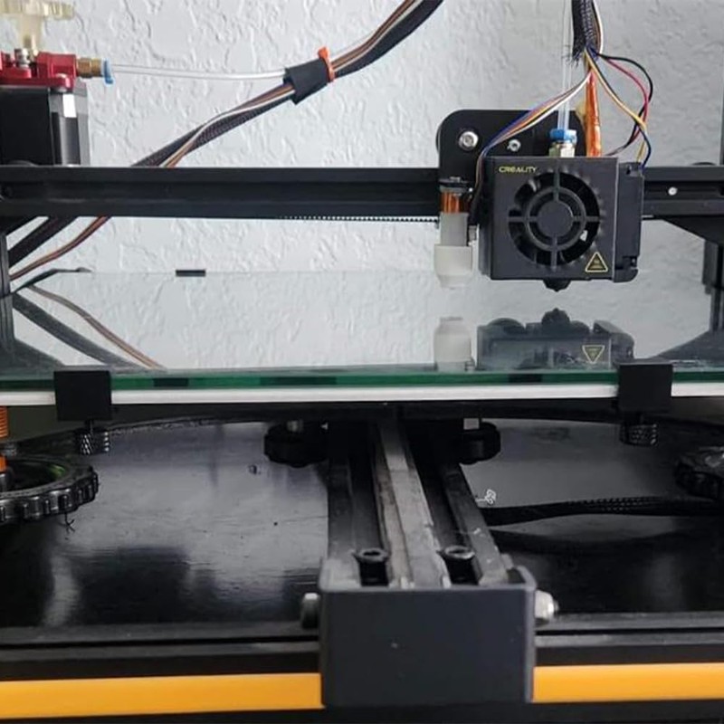 - Each 3D Printer Ender 3 Glass Bed Clips is made of aluminum alloy material, light and sturdy; The U shaped notch design can make a better fixing effect and make the glass bed difficult to slide,The thickness of the clamping platform is 3mm-9mm.