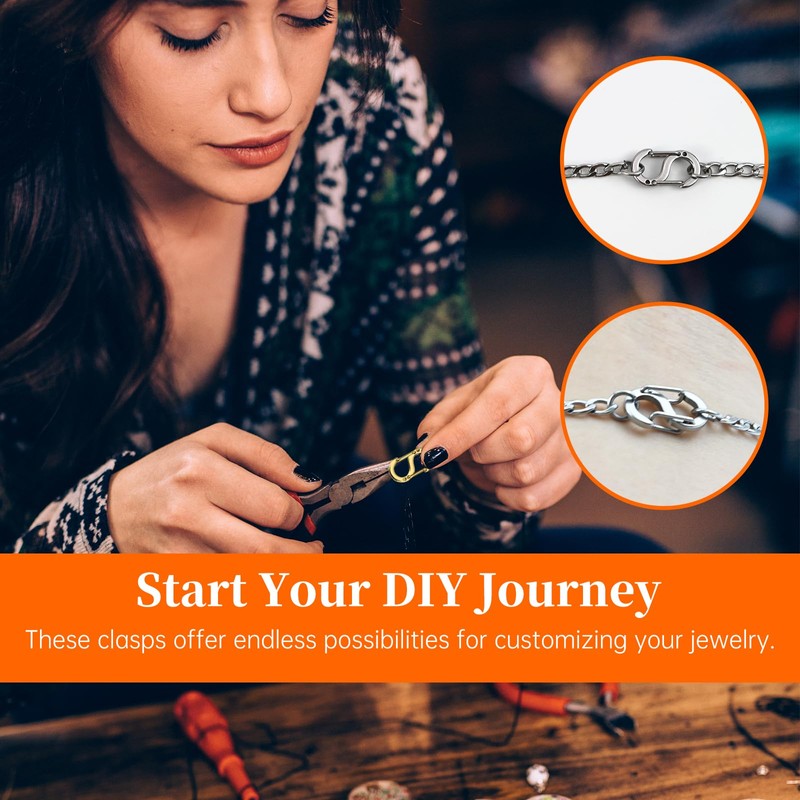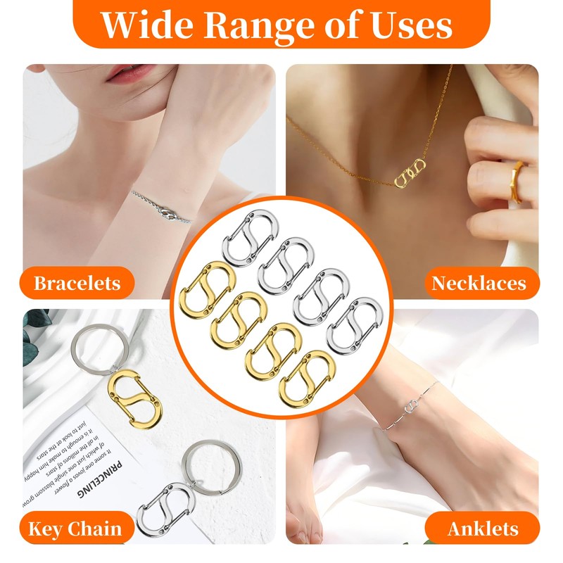 1. Elevate your jewelry-making experience with our versatile set of 8 double opening necklace clasp! These double lobster clasps and closures are designed for easy use and secure fastening.