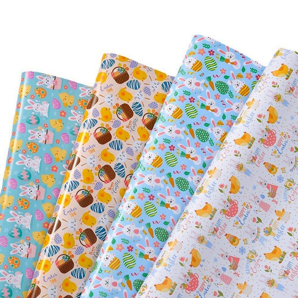 - 【4 Beautiful Designs】Our Easter gift wrapping paper adopts 4 beautiful and colorful easter designs: cute bunny chick, breaking shell bunny, chick egg basket, and bunny with carrot, cute and delicate, a lovely addition to your easter gifts, crafts, packages and party decorations.
